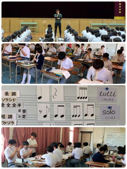 アルトリコーダーの練習の後、リズムアンサンブルに取り組んでいます。