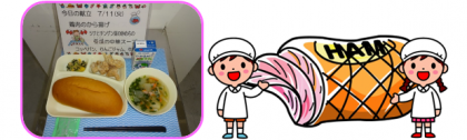 今日の給食では、豚肉のプレスハムを「冬瓜の中華スープ」に使用しています。