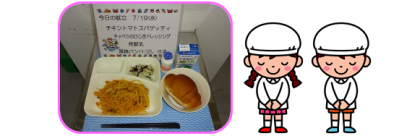 今日で、一学期の給食は終了となりました。今学期も何かとご協力いただきありがとうございました。二学期の給食は、8/28(月)より開始しますので、よろしくお願いします。