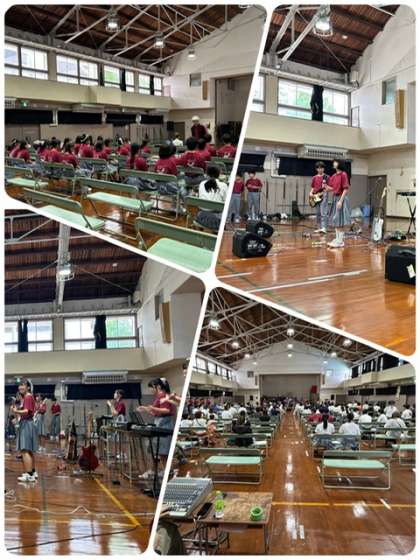 23日、日曜日に軽音楽部が校内ライブを開催しました。100人以上の観客の前で16曲を演奏し、会場は盛り上がっていました。