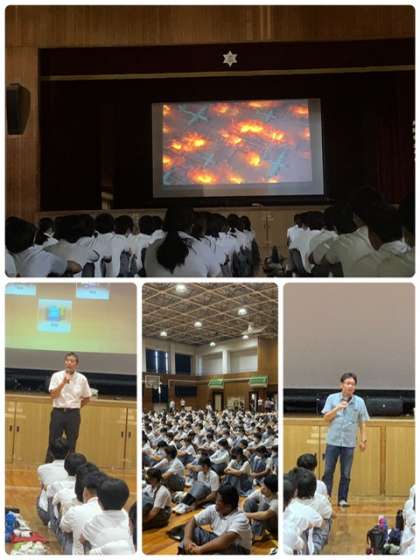 最初に体育館で校長先生から、平和登校日の意義についてお話がありました。