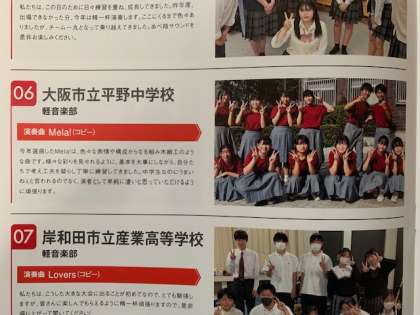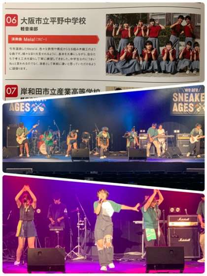 関西地区の高校生が大半のなか、数少ない中学校の軽音楽部として参加(7校)しています。