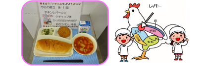 今日の「チキンレバーカツ」の原材料は、鶏肉、鶏レバー、たまねぎ、パン粉、小麦粉、でん粉、砂糖、食塩、カレー粉となっています。鶏などのレバー(肝臓)には、鉄やビタミンAが豊富に含まれていますが、その食感やにおいから苦手な人も多いようです。そのため、ほのかなカレー味をつけたミンチカツ風にして食べやすくしています。