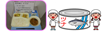 今日の給食では、もやし、コーンとともに油で炒め、塩、こしょう、しょうゆで味つけしています。