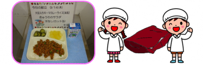 今日の給食では、新しい試みとして、豚のレバーを細かくカットし、チップ状にした製品をキーマカレーライスの具として使用しています。ひき肉と一緒に使用し、カレー味にすることでほとんど気にならず、食べやすくなっています。一人当たりわずか7g使用するだけで、今日の給食一食分の鉄分の4分の1以上(3.8mgのうち1.0mg)を補っています。