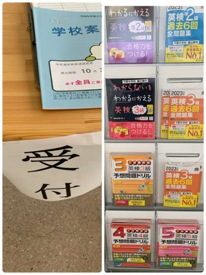 職員室前に自学用に英語検定の学習ドリルを教頭先生が準備してくださいました。