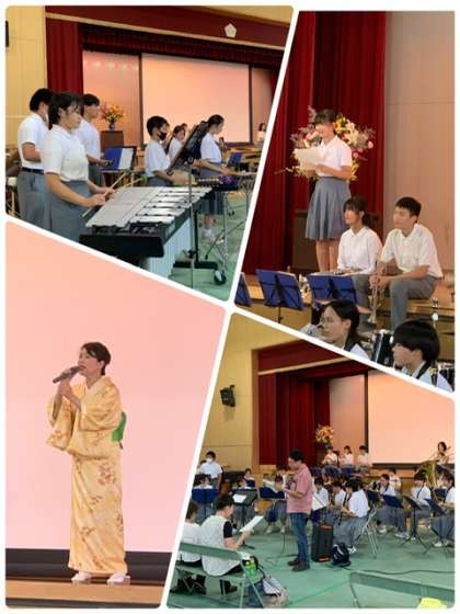 第二部では、河内音頭の一座や歌謡ショーに加え、平野中学校吹奏楽部も敬老会で演奏を披露してくれました。