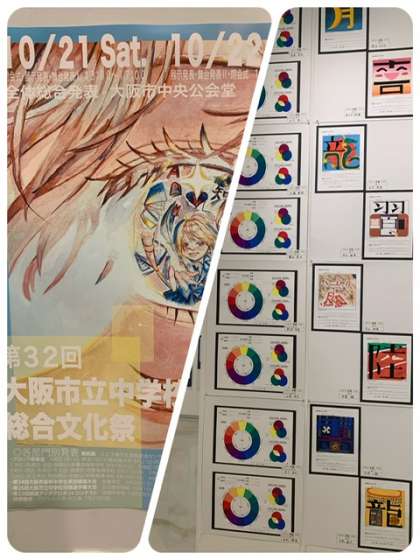 大阪市立中学校総合文化祭 公開日 2023/09/23 更新日 2023/09/23 出来事 江之子島文化芸術センターで美術展が行われています。本校からも、12色相環とレタリングの作品を出展しています。