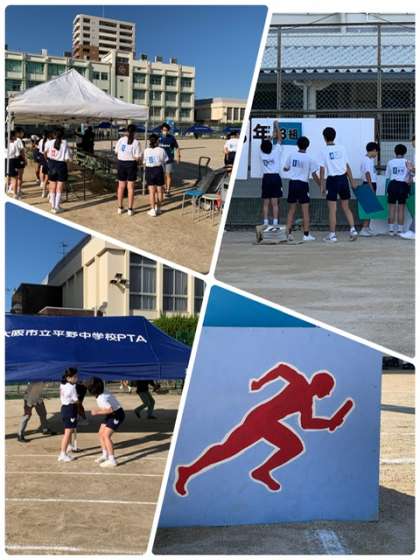 明日体育大会予行 公開日 2023/10/02 更新日 2023/10/02 出来事 本日は45分授業とし、放課後体育大会予行の準備をしました。 テント設営や、グランド整備、得点板の設置、放送や本部など係生徒が準備してくれました。係生徒の皆さんありがとうございました。 準備の後、生徒会、体育委員、放送係が開閉会式の予行にも取り組みました。 明日は45分授業で、午前中は体育大会予行です。(午後2時間は授業) 体操服や水筒など忘れないようにしてください。