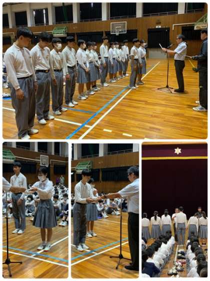 ●体育大会の部活動対抗リレーの優勝したクラブに賞状が手渡されました。
