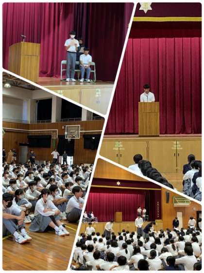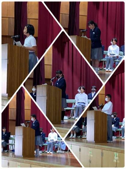生徒会立会演説会 公開日 2023/10/13 更新日 2023/10/13 出来事 本日6限、体育館で生徒会立会演説会を実施しました。 選挙管理委員の司会進行のもと、会長・副会長・書記に5名の生徒が立候補してくれました。 どの候補者も真剣に抱負を述べ、応援演説も立派に応援してくれました。 この後、教室に戻り、投票がおこなわれました。 投票の結果は週明けの月曜日に行われ、全校集会で認証されます。