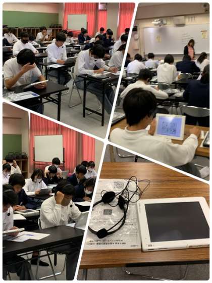 話す、の技能については3限以降、LL教室にて、クラスごとに実施しました。
