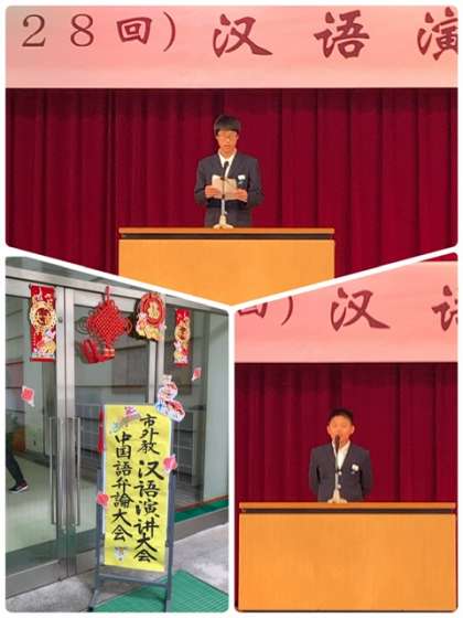 本日、住吉小学校にて中国語弁論大会(大阪市外国人教室研究協議会主催)が開催され、本校から中学生の部に2名が出場し、出演者は皆中国語で弁論を行います。