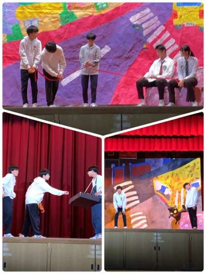 監督、役者、道具・背景、照明、音響などそれぞれ頑張り、一つの劇を作り上げました。