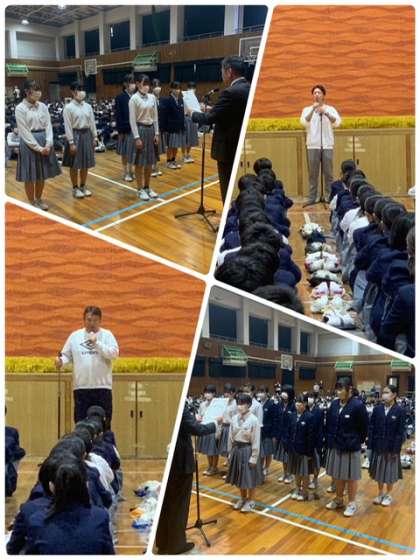 ・風紀委員会、生活指導担当からは、フィールドワーク、職場体験、進路など外へ出て行く機会もある中、服装など忘れ物をなくしましょうと注意がありました。