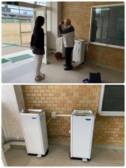 ●玄関ホールに設置した冷水機の水質検査に薬剤師さんに来て調べていただきました。