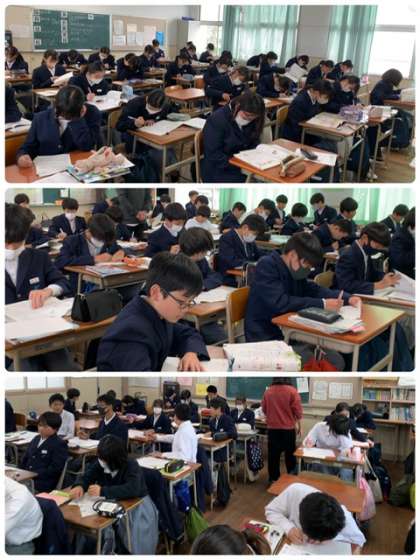 男女に分かれて呼吸器・循環器の発達などのプリントに取り組んでいます。