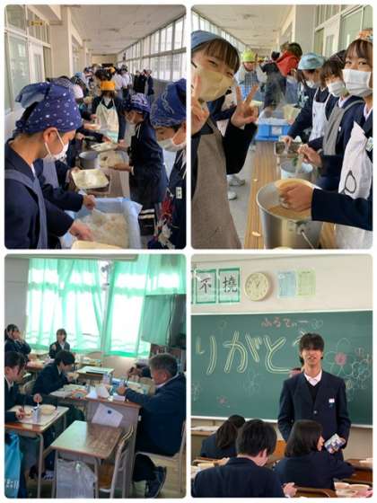 音楽を流したり、今日は給食ニュースの一口メモを読んでいました。