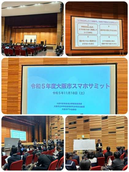 令和5年度大阪市スマホサミットに生徒会役員が参加しました。スマホの賢い使い方やルールとマナーについて、他校の生徒会役員と話し合いました。また、警察官や弁護士の方と一緒に話し合いました。