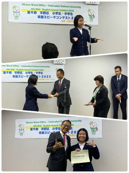 小学生の部(低学年・高学年)と中学生の3部門に分かれてのコンテストで、一次審査を通過した上位3名による最終審査に、本校生徒が出場し見事1位となりました。