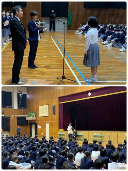 ・土曜日に開催された、平野区英語スピーチコンテストの表彰が教頭先生より紹介されました。