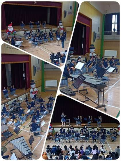 新平野西クリスマス会 公開日 2023/12/04 更新日 2023/12/04 出来事 12月3日、新平野西こども会主催のクリスマス会で、吹奏楽部が演奏をしました。集まった子ども達もクリスマスソングに喜んでくれました。