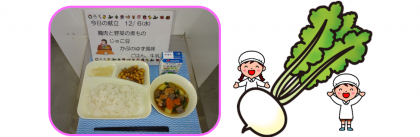 今日の給食では、根の部分をゆず風味の甘酢あえにしています。