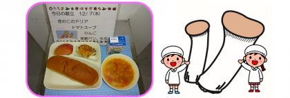 今日の給食では、しめじ、マッシュルームとともに「きのこのドリア」の具として、使用しています。