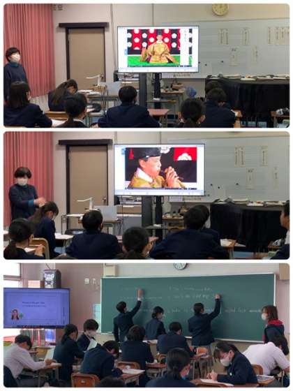 本日のようす 公開日 2023/12/11 更新日 2023/12/11 出来事 12月11日(月) ●授業 ・1年音楽 「雅楽」について 「越天楽」の唱歌や楽器について学習しました。 ・3年英語 文法の後置修飾を学んで、プリントの問題を解いています。 ●2年 学年レクリエーション 6限に体育館で、学年レク大会を実施しました。 学年で実行委員を募り、計画から当日の司会・進行まで生徒主体で実施しました。 この経験が今後の3年生の修学旅行に生かされる事を期待しています。