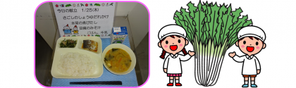 今日の給食では、豚肉と合わせて煮びたしとして使用しています。
