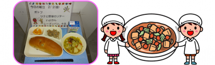 今日の給食では、牛肉、ウインナーソーセージ、じゃがいも、キャベツ、ニンジン、パセリを使用し、チキンブイヨン、塩、こしょうしょうゆで味付けしたスープで煮込んでいます。