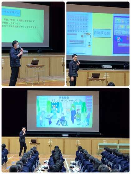 昨日に続いて、障がい者やさまざまな違いのある人が、安心して暮らせる社会をめざした、ユニバーサルデザインなどについて学びました。