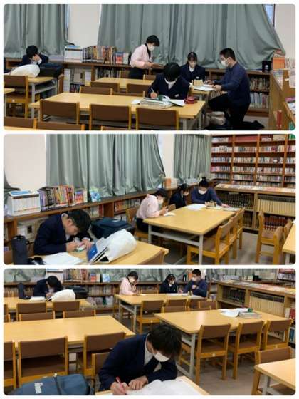 3年生数名が入試に向けて、参加していました。わからないところは大学生のサポーターに教えてもらっています。
