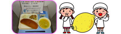 今日の給食では、和歌山県産のレモンを使用してドレッシングをつくり、ゆでたカリフラワーにかけています。