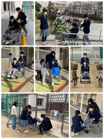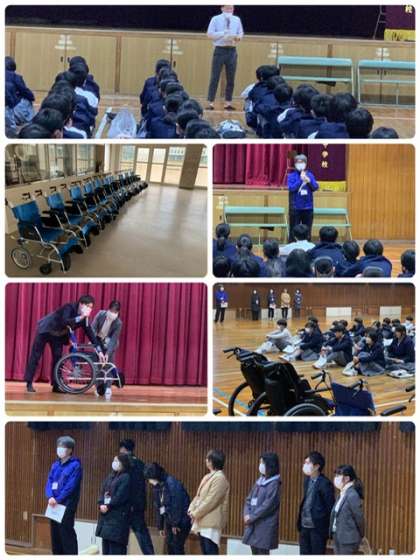 2年生が車椅子体験を2クラスごとに分かれて実施しました。