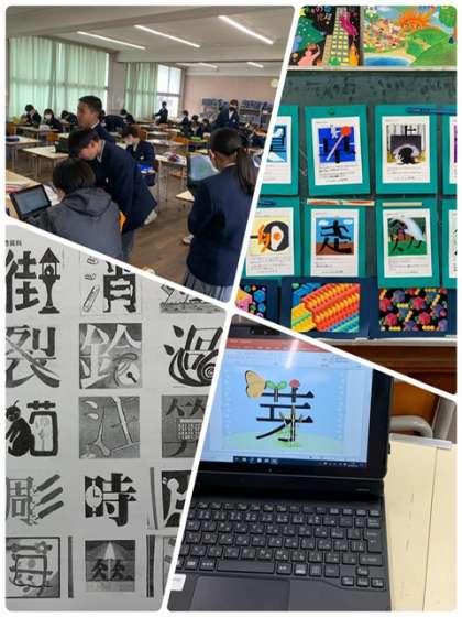 絵文字の作成。過去の作品などを参考にパソコンを使って絵文字を考案しています。文字もさまざまな書体に変換がすぐできるので、便利です。