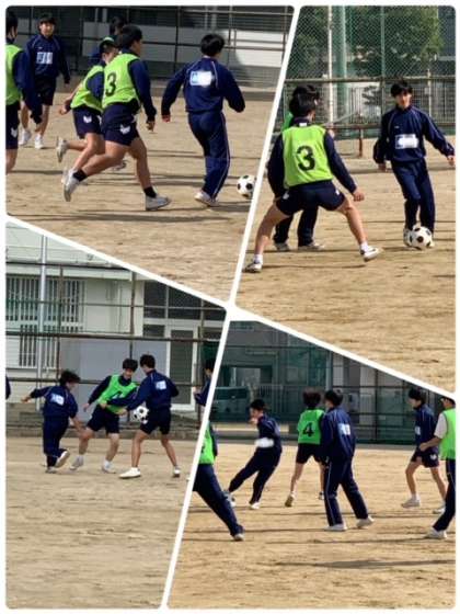 男子は運動場でサッカーをしています。体育の授業もあと3〜4回だそうです。