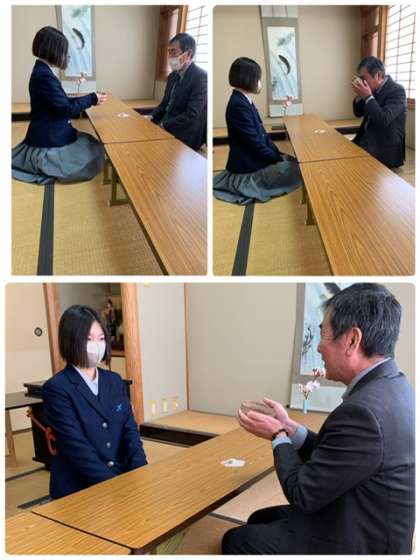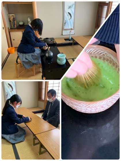 茶道部がお点前をしています。校長先生も美味しく抹茶をいただきました。