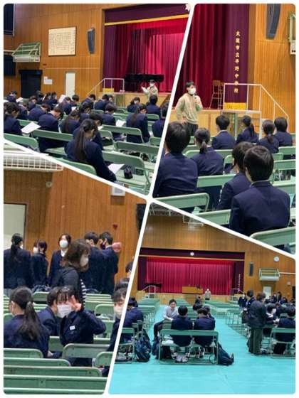 放課後、体育館で月曜日の公立一般選抜に向けて事前指導をしています。