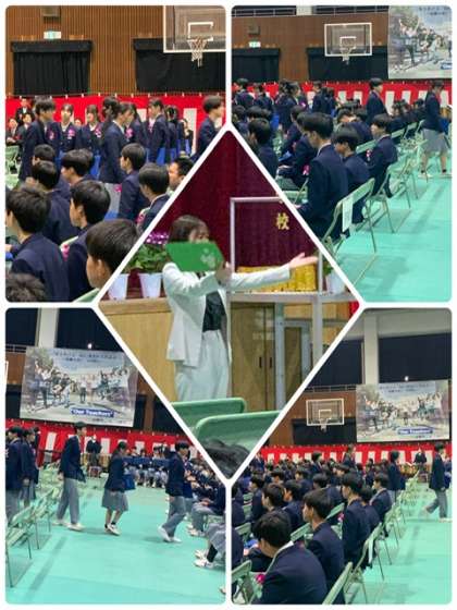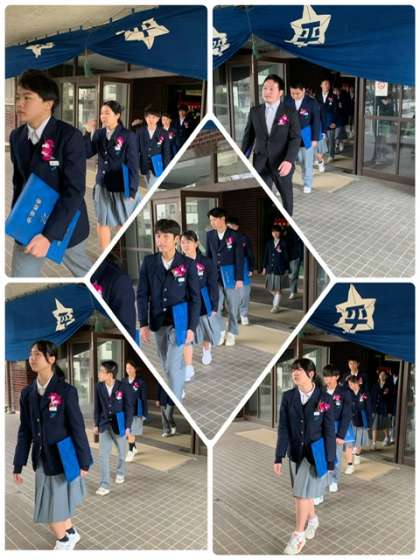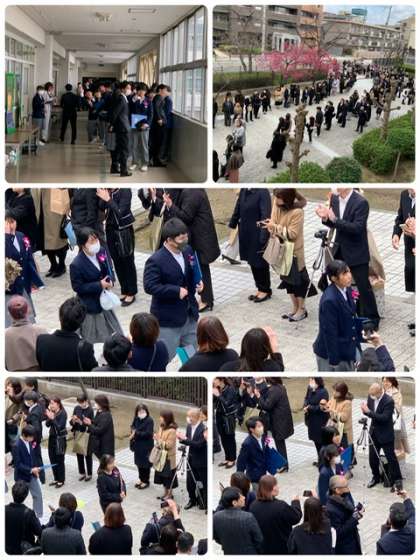 ●卒業生退場 最後の学級活動を終え、花道から正門を出ていきます。