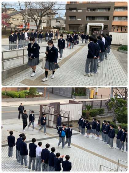 8時10分〜8時20分の間、正門に花道のように並び、「おはようございます」と元気な声が飛び交います。登校してくる生徒の中には、沢山の人数に驚いて、恥ずかしそうに小走りで通り過ぎる人もいました。