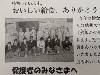 自校炊飯の本校の給食ですが、美味しいと評判です。栄養教諭の先生と給食調理員の皆さんで、材料は同じでもさまざまな工夫を考え、調理をしてくださっています。