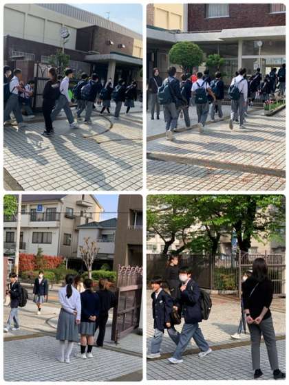 元気に挨拶してくれる生徒もいれば、恥ずかしそうに通り過ぎる生徒もいます。生徒会の生徒や先生達も門に立ってくれています。