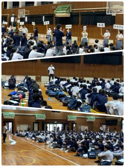 ・学年集会・・学代の司会進行で学年集会が開かれています。
