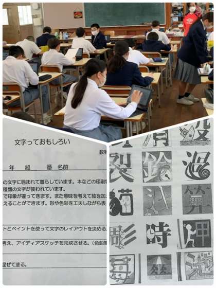 パソコンを使用して絵文字を考案し、できた人から画用紙に描いていきます。