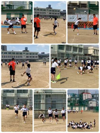 体力テストの取組で、50m走とハンドボール投げをしています。