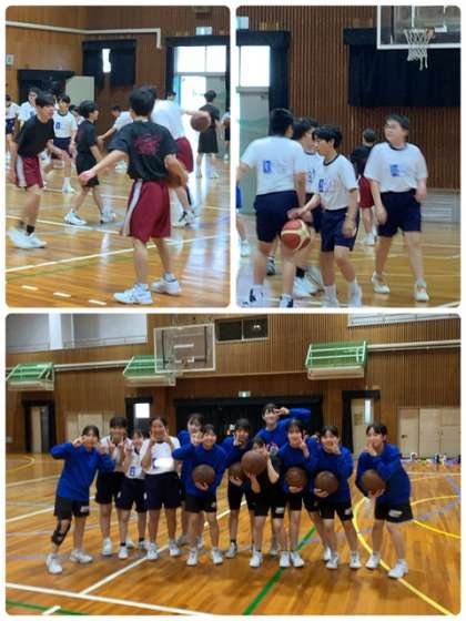 給食後から体育館で男女バレーボール部が練習し、15時30分から男女バスケットボール部と交代です。