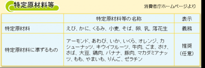 ※特定原材料…詳しくは消費者庁ホームページをご覧ください。⇒「消費者庁ホームページ/食物アレルギー表示に関する情報」