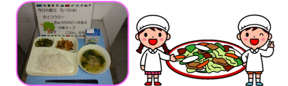 今日の給食では、豚バラ肉をゆでておき、白ねぎ、しょうが、にんにくを炒めて香りを出し、ゆでた豚肉とキャベツ、ピーマンを炒めてテンメンジャン、砂糖、塩、しょうゆを合わせたタレで味つけしています。