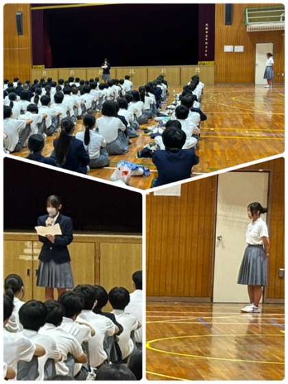 修学旅行実行委員の進行のもと、実行委員からは修学旅行への想いが熱いメッセージとして3年生に語られました。